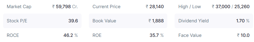 Abbott India’s stock has consistently performed well due to its debt-free balance sheet, high return ratios (ROE/ROCE), and strong market presence.