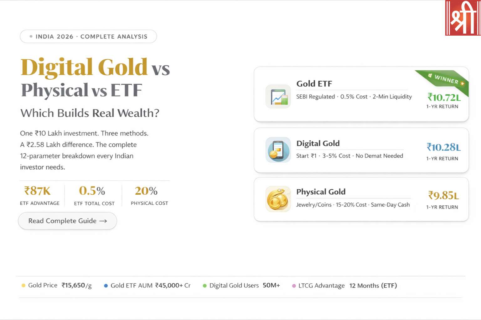 . Quick Answer For most Indian investors in 2026, Gold ETFs are the superior choice. They offer the lowest entry cost (₹130), highest net returns (up to ₹87,000 more than physical gold on ₹10L), and instant liquidity. Best for Wealth: Gold ETF Best for Beginners: Digital Gold Best for Tradition: Physical Gold Scroll down for […]